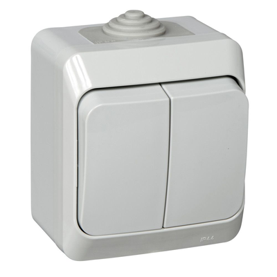 Выключатель Schneider Electric ЭТЮД (серый, открытой установки) двухклавишный предназначен для применения в сетях до 250В, на ток до 10А. Выключатель подходит для большинства типов ламп, включая люминесцентные. Две клавиши позволяют управлять двумя источниками света с одной точки. Он удобен в применении и отлично подходит для ванной комнаты (IP44). Сделано в России.